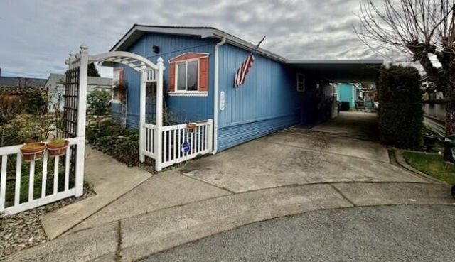 Move-in ready! This spacious 1,782 sq. ft., 3-bedroom, 2-bath manufactured home is located in Willow Estates, a desirable 55+ park. Tucked at the end of the street, the setting offers added privacy and a peaceful feel.The home features a split floor plan, walk-in closets, vaulted ceilings, and a cozy woodstove. Large windows and a skylight in the kitchen create a bright and cheerful atmosphere throughout the main living areas.Outside, youll find nicely landscaped grounds and a new wood storage shed perfect for garden tools and extra storage. A new HVAC system was installed in 2024, providing comfort and efficiency year-round.This well-maintained home is ready for its next owner! Space lease is $675 per month.